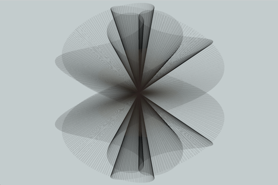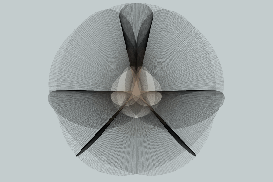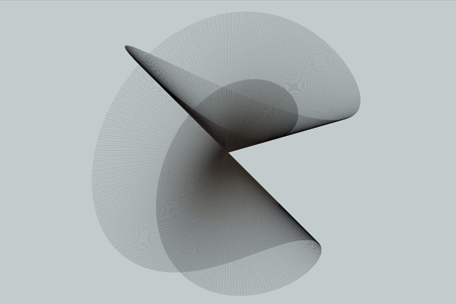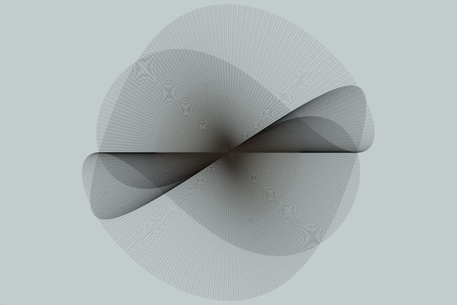 "Sarah gave single-line simple commands using pseudo-random numbers as variables, then it started to dance in the digital 3D space, those movements are “random enough” and elegant in their own way. The artist programs a machine to generate what can be called “random” numbers, but it’s not truly random. It’s just an attempt to achieve an unpredictable, random result. Eventually, this series embraces a romantic, elegant style like Waltz though the pieces do not use any sound. If you take the time to feel with your heart, you could enjoy gentle rhythm and the elegant rise and fall within the series. Sarah engages within the unpredictable movements through these random lines inspires us to look further into digital art. "